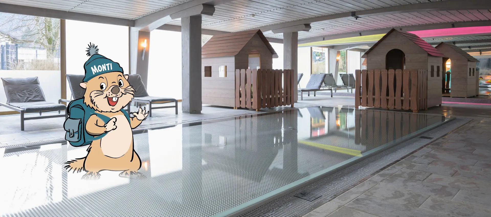 Es ist so weit – seit Ende Dezember 2025 können wir Familien mit Kindern mit unserer neuen Montis Erlebniswelt überraschen! Das kreative Architekten-Team hat aus dem bisherigen Familienpool ein Wasserparadies gezaubert – einen XL-Kinderwasserspielplatz für unsere kleinen Gäste. Auf einer rund 25 m² großen und 15 cm tiefen Wasserfläche kann sicher und nach Herzenslust getobt, gespielt und gespritzt werden. Und es gibt noch weitere Neuheiten: eine Kindersauna mit angenehmen 34 Grad, ein Kinderkino, einen Spielraum, eine Softballgrube und eine Kletterwand für Babys/Kleinkinder. Teenies erwartet eine Gamingstation, ein Billardtisch, ein Dart- und Flipperspiel, ein Tischkicker, ein Pac-Man-Automat und vieles mehr. Zum „Kuscheln“ eignet sich „Monti“ – das kleine Murmeltier. In der warmen Jahreszeit (Mai bis Oktober) genießen Eltern, Oma und Opa entspannte Stunden auf unserer Terrasse oder in einer der gemütlichen Cabanas, während Kids Abkühlung und Spaß im großen Outdoorpool finden. Noch Zeit für ein bisschen Beauty – und das gemeinsam mit den Kids? Sehr gerne verwöhnt unser SPA-Team Groß und Klein mit wohltuenden Anwendungen – mit viel Glitzer, bunten Nagellacken oder wohltuenden Massagen und Gesichtspackungen!
